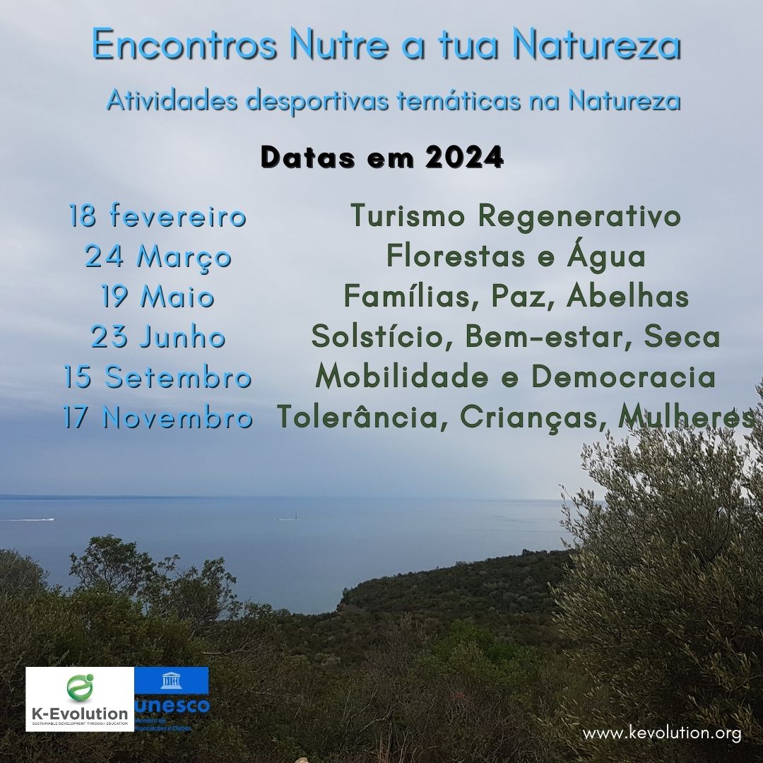 A partir de fevereiro de 2024 a Associação The K-Evolution lançará o seu recém-criado programa “Nutre a tua Natureza”. Serão 6 (seis) encontros informais ao longo do ano, nos quais procuraremos estar mais próximos e ativos junto da Natureza, cuidando do nosso Ser, em harmonia com o meio ambiente e em atividades tão diversas como caminhar, nadar, remar, andar de bicicleta e muito mais.